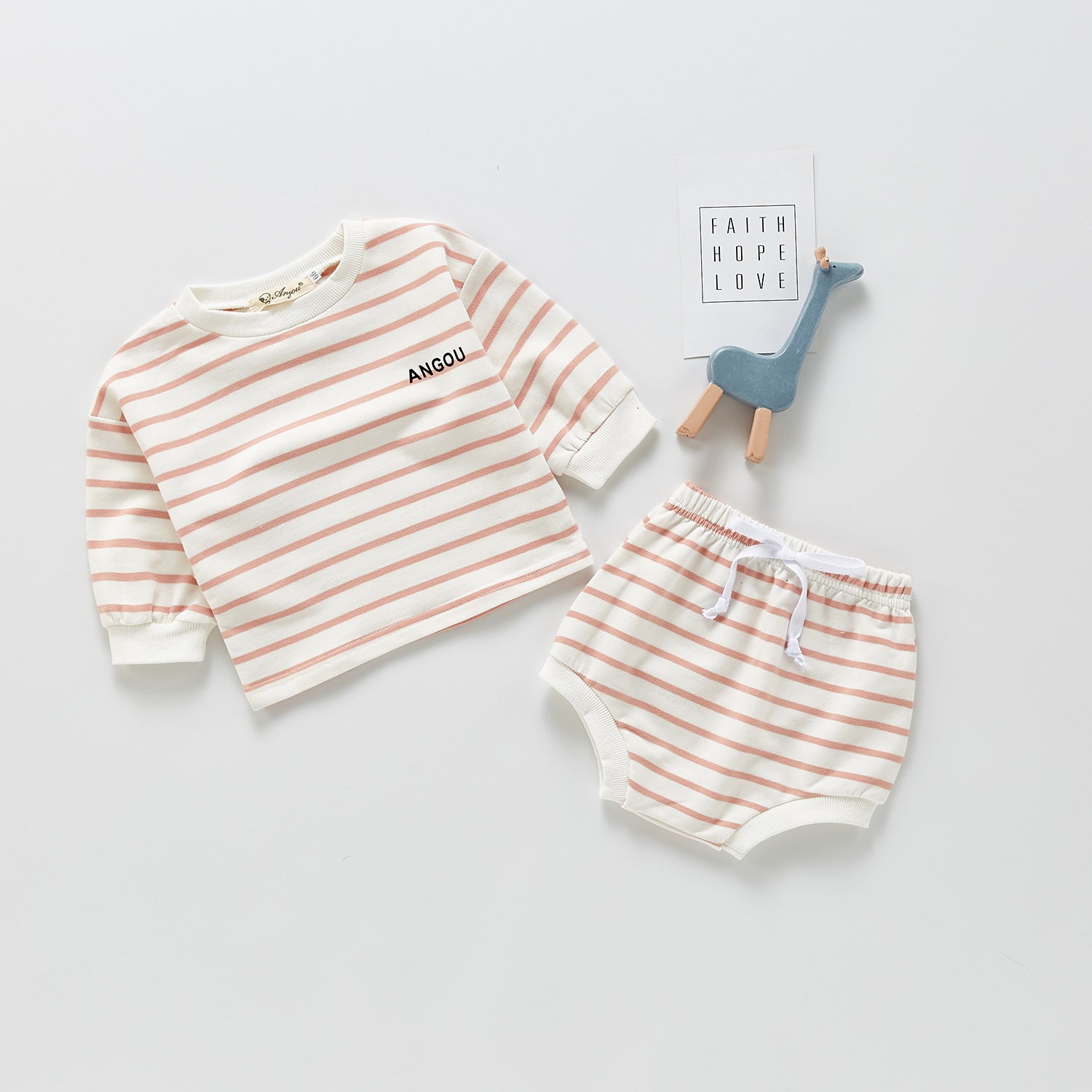 Long-sleeved Striped Two-piece Set