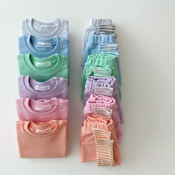 Color: Purple long-sleeved sweater + striped fake bottoming pant, orange long-sleeved sweater + striped fake bottoming pant, light gray long-sleeved sweater + striped fake bottoming pant, blue long-sleeved sweater + striped fake bottoming pant pants